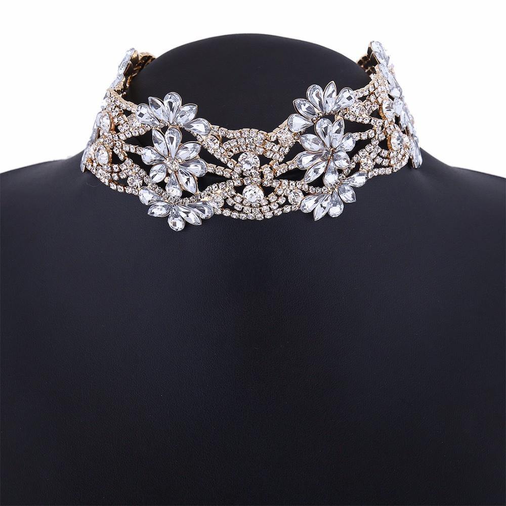 Vintage Big Crystal Flowers Collar Choker Necklace